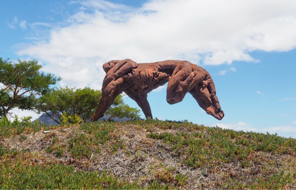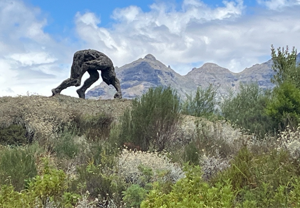 Vrouwen, mannen, vogels, mythische figuren en veel Afrikaanse dieren. Bij een aantal diersculpturen ontbreken poten of zelfs een kop. Dat is dan weer jammer. Die mentaliteit komen we hier meer tegen. Wel aan een luipaard beginnen en dan niet afmaken. Onze folder interpreteert het anders: ‘The disintegrating form of a predator can be seen as an apocalyptic image representing the destruction of the Earth’s wilderness.’